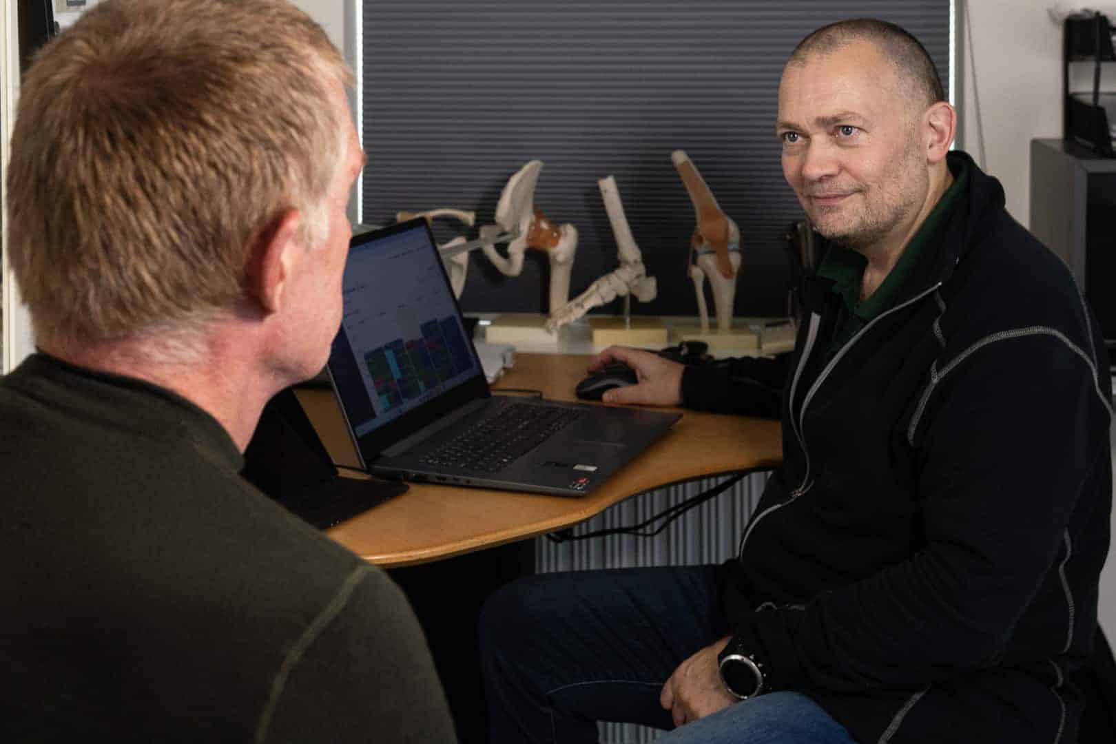 Hos mig er manuel terapi aldrig en isoleret behandling. Jeg kombinerer den altid med øvelser, rådgivning og målrettet genoptræning, så du får et samlet forløb, hvor vi både arbejder på den akutte og sub-akutte lindring og den langsigtede styrke og stabilitet.